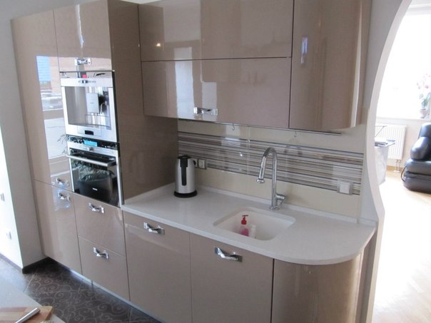 А стиль современный - либо глянец черный для гарнитура, либо дерево черно-коричневое или беленый дуб.