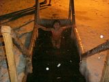 Вернулись в Тюмень, к источнику. Приехали к 19 часам. Впечатление отличное. Но и то обилие народа портило слегка впечатление. Через 2 часа к 21:00 людей стало значительно меньше. В тот вечер падал большими хлопьями на голову снег. Не часто поплаваешь под снегом... Наш бешенный папа окунул ребенка в прорубь, там недалеко стоит баня и рядом прорубь уже с обычной водой, покрывшейся льдом. А потом и второй раз:
