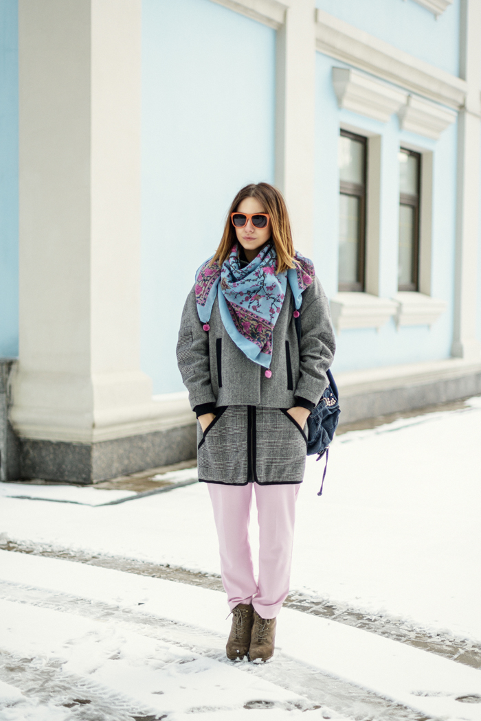 Такие или подобные туфли (очень светлые или ярких жизнерадостных цветов) лучше всего носить без колгот, то есть потерпеть до тепла. Если вам кажется, что я несу чушь и капронки форевер, или вам совсем невтерпеж и ждать + 15 сил уже нет, или вы каким-то образом ограничены дресс-кодом, наденьте уж тогда 8 ден, они хоть как-то сольются с ногой.