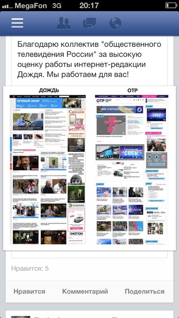 Дизайн... Например у http://russian.rt.com/ он есть. У ОТР частично, видно что руками делали. Дождь - видимо в этом нагроможденьи кубиков типового шаблона то, что должно было быть дизайном просто смыло.