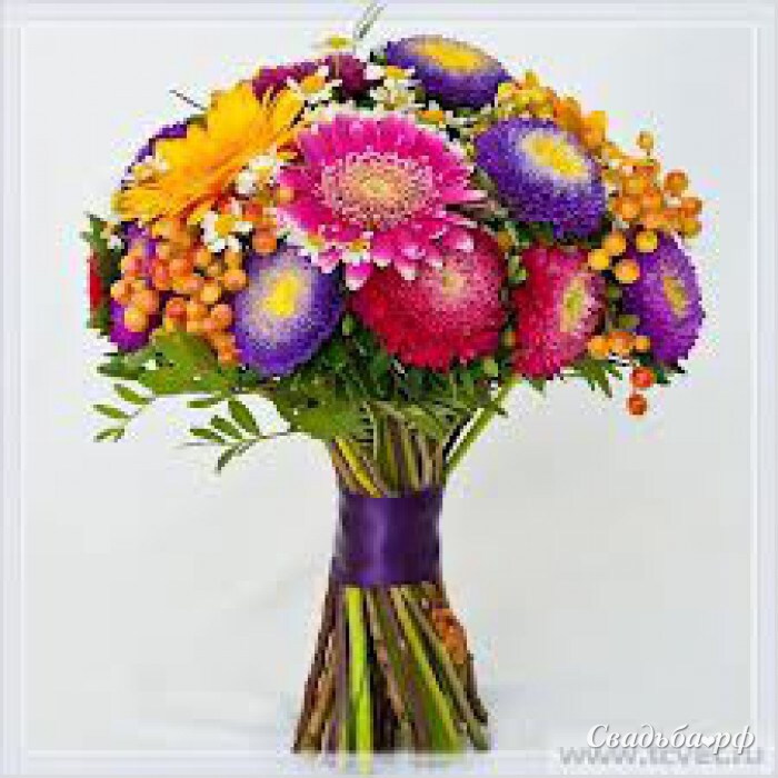 а вообще из разноцветных астрочек, красиво собранный и украшенный букетик будет даже красивее, чем розы тяжелые, которые колом стоят