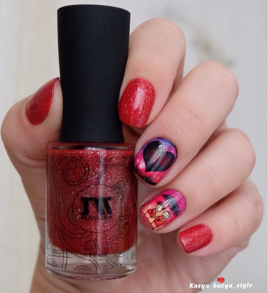 Так из прям красных у меня только Поймала твой взгляд,а его уже показали .То я пошла на хитрость.Я накрасила магнитный лак Шафран и дабы подогнать цвет к красному покрыла витражным лаком .Очень надеюсь ,что мой маникюр не забракуют.