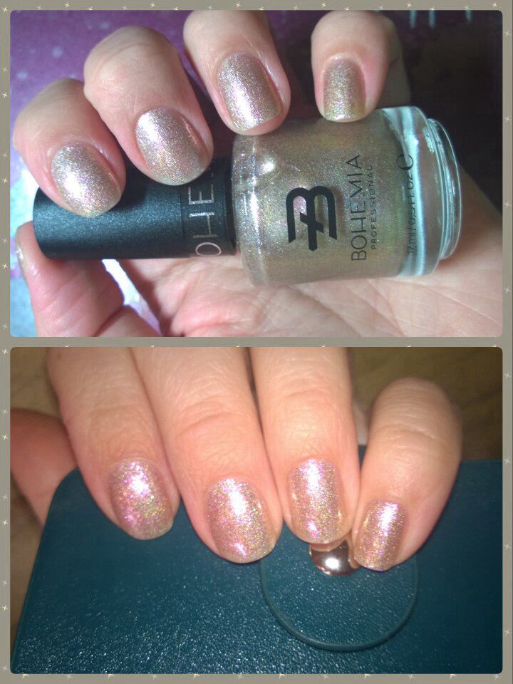 Ну чтоооо... Стала я таки обладательницей блестючей Богемии)) голографик из нее и вправду никакой, зато переливается оч здорово.. Можно смотреть и смотреть)) золотисто-розовый шиммер и мне кажется еще есть серебро..