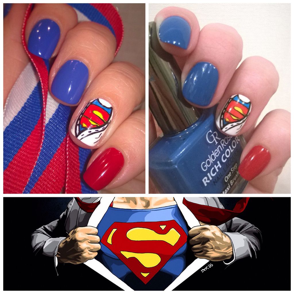 Ну вот вопщем то мой тематический маникюр для инсты) не могла определиться кого больше люблю, но у супермена цвета ярче)))))))