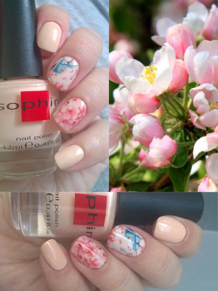 Казя-базя, маникюр в бежевых тонах с цветастым слайдером очень нежный