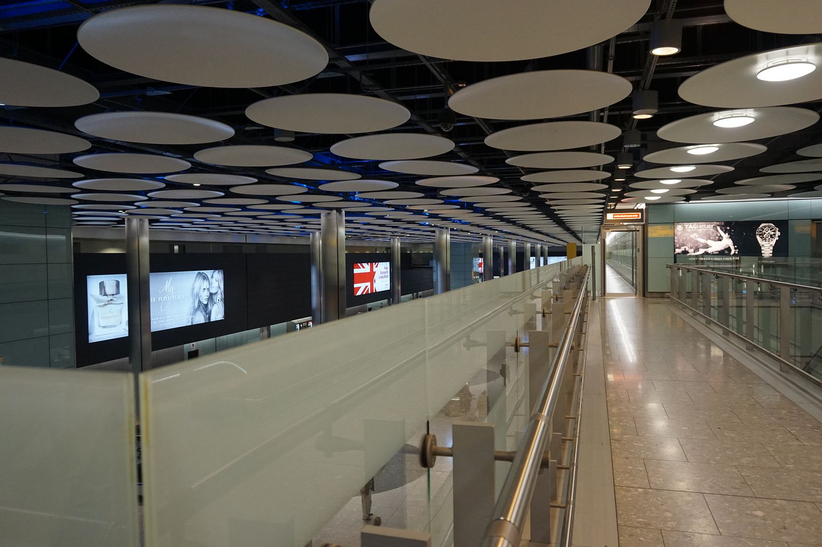 Ну, поехали. В смысле, полетели. Итого, приземлились мы по местному часов в 7 вечера, точно уж не помню. Выходим, идем значит такие по стрелкам к паспортному и выдаче багажа и тут оба-на, приходим к поезду. Оказалось, он нас к багажу и повезёт. Вообще в Хитроу терминал 5 красив безумно. Просторный. Сверкающий. Чистейший. При всей многолюдности - удивительно тихий.