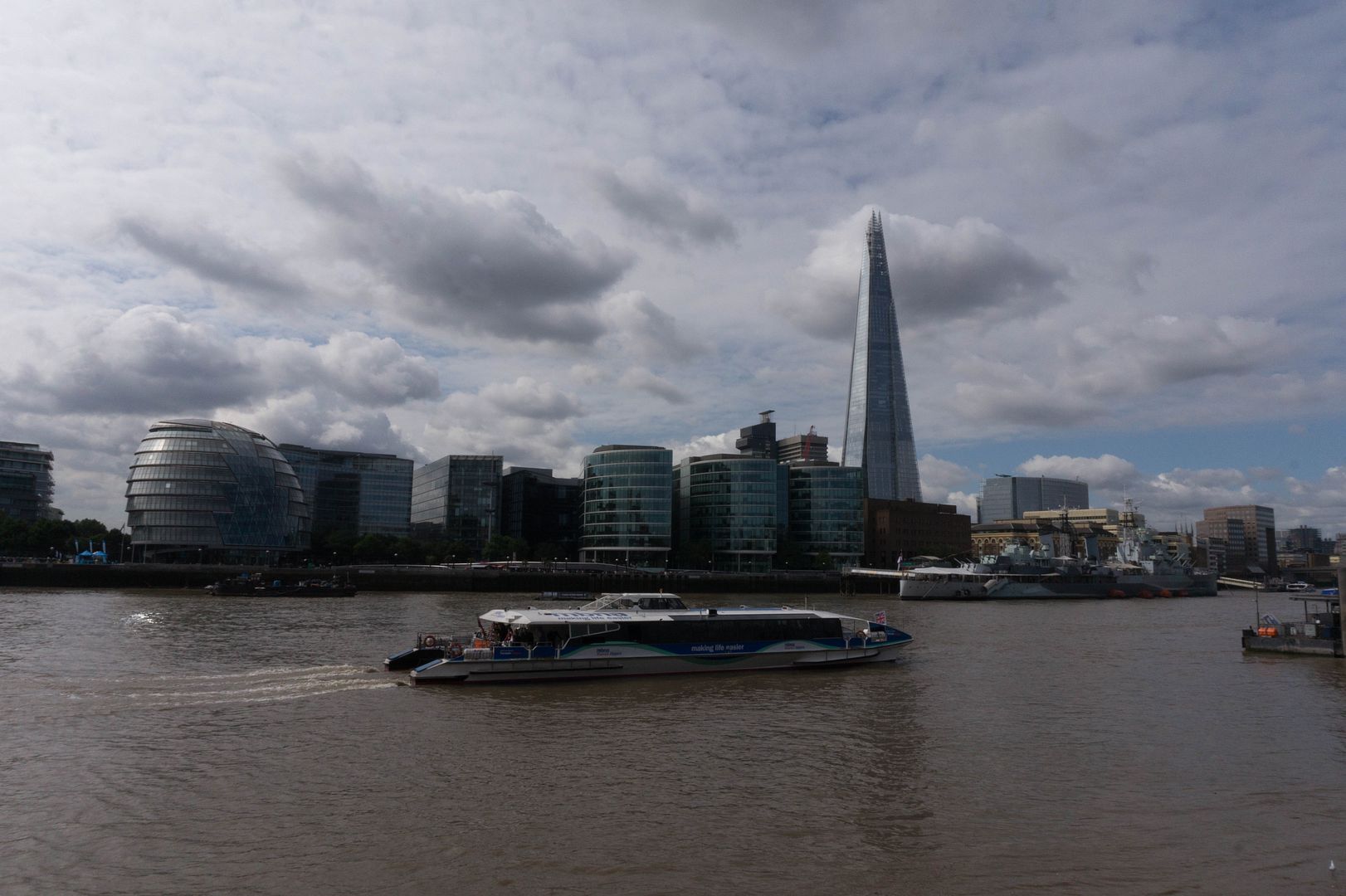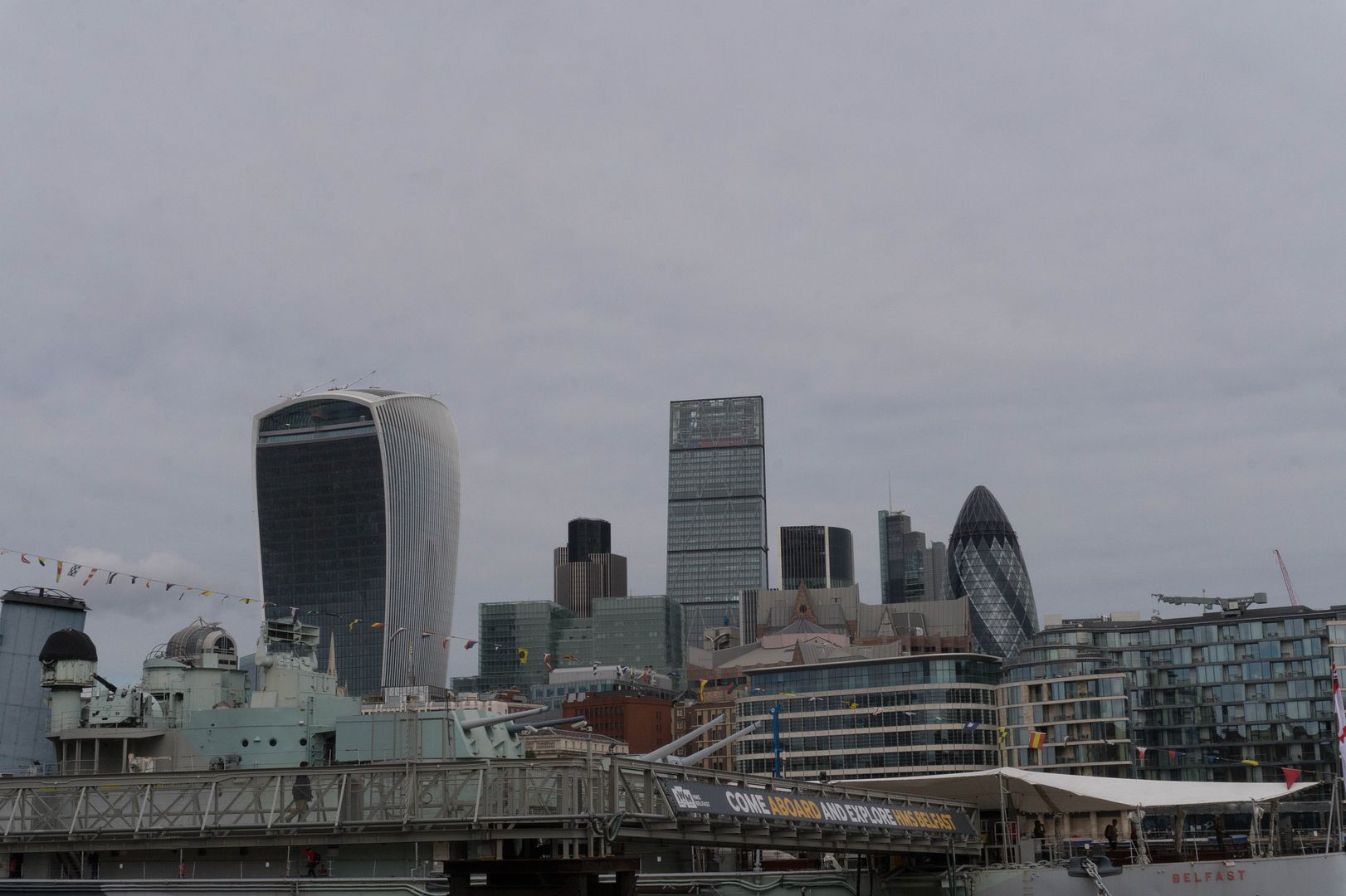 Дальше мы взяли чуток вправо, мимо мэрии, припаркованного Белфаста (что-то вроде нашей Авроры в Питере) и при выходе на набережную архитектура Лондона продолжает бить по голове обухом топора :)