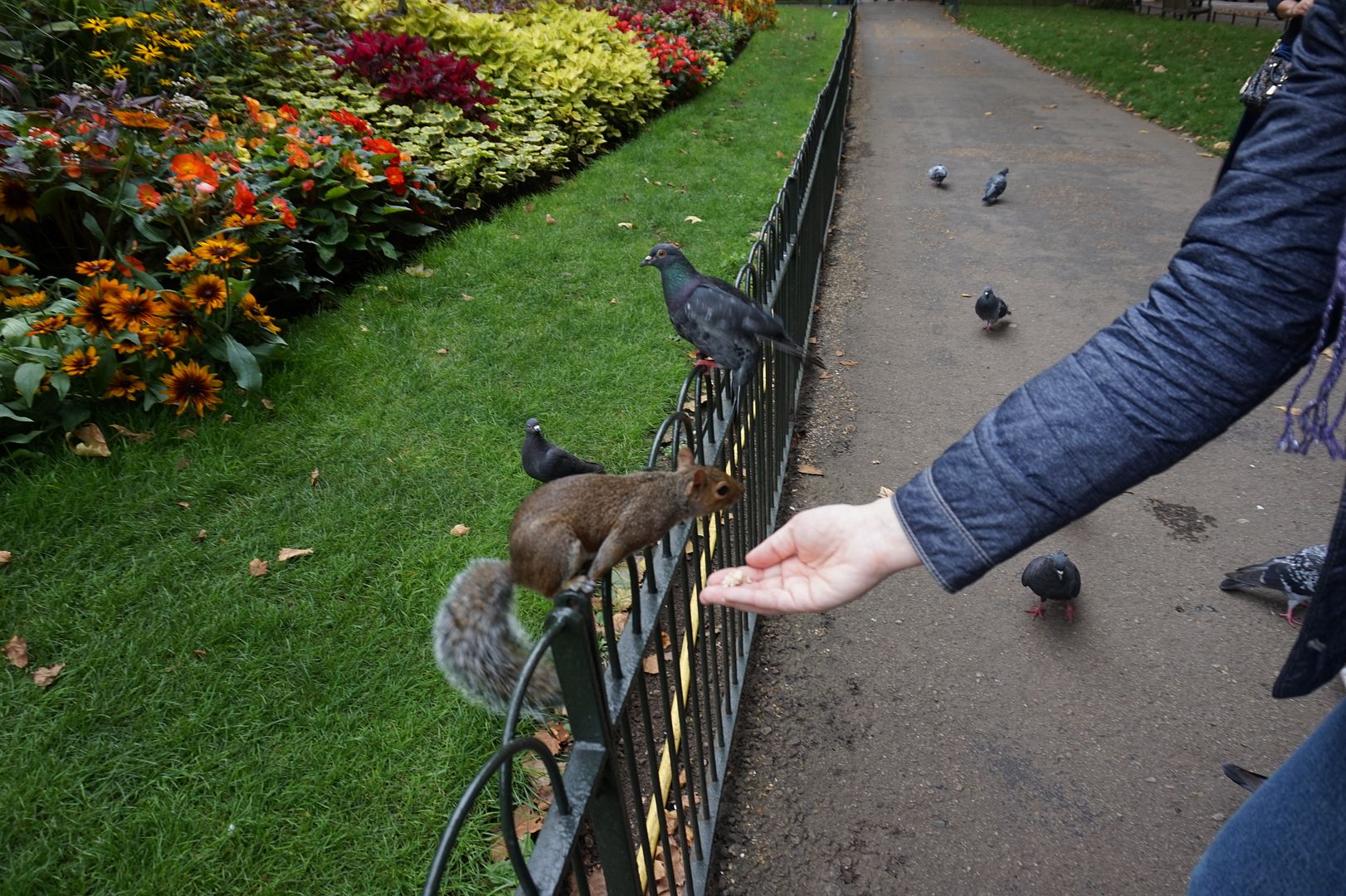 Естественно, лондонские белки не хуже любых других, и предпочитают миндаль. А нам пришлось делать себе пометку, закупиться миндалем в супермаркете для других парков.