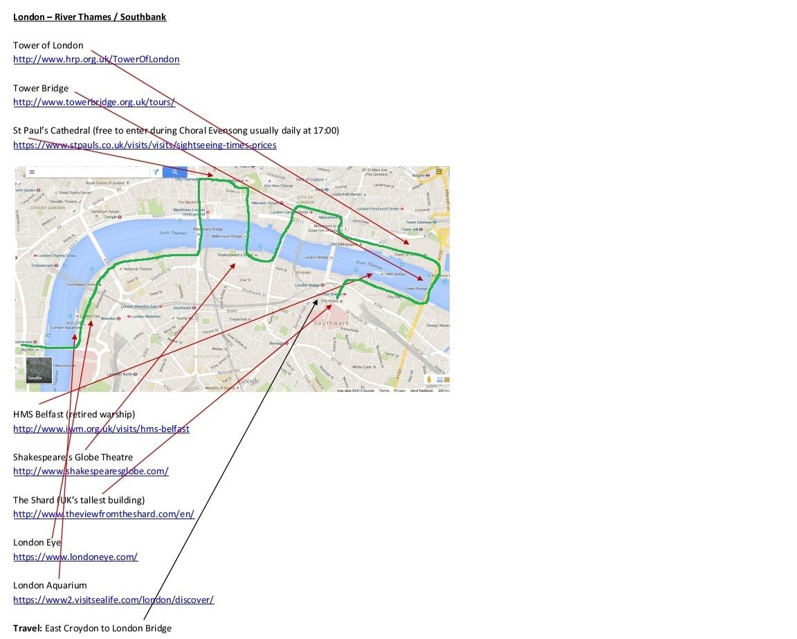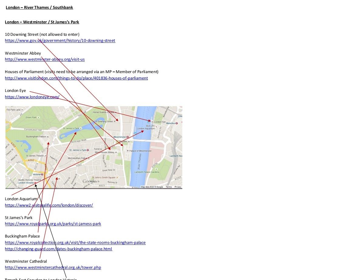 Продолжим, что-ли. Первый понедельник в Лондоне у нас был уже с намеченными мероприятиями. Вообще, у меня была куча вот таких листов. Вот, например, то, что мы сделали в первый день. Зеленым отмечен уже состоявшийся маршрут :)
